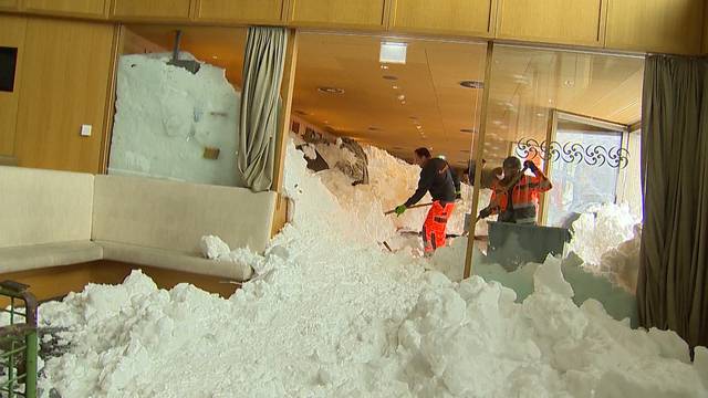 Auf der schwägalp ar ist ein hotel von einer lawine erfasst worden.